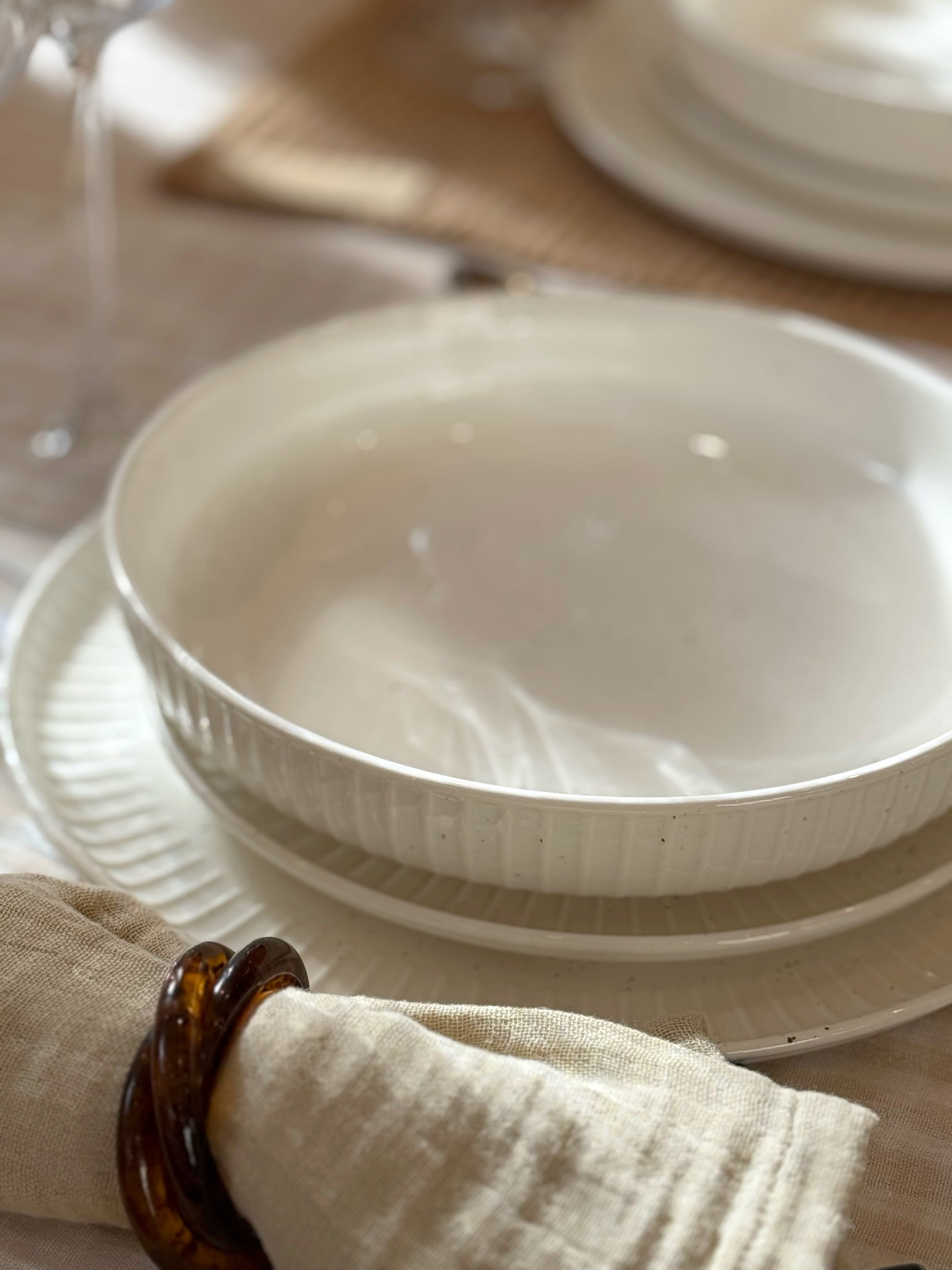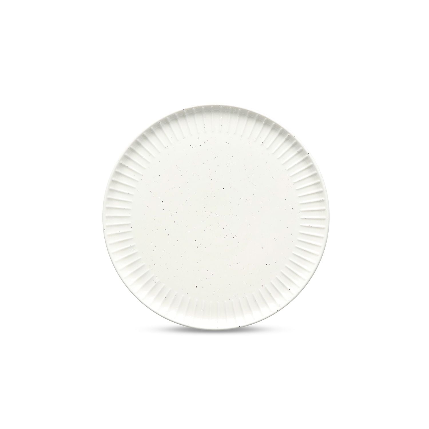 Assiette à dessert, vendue par 4. En porcelaine blanche moucheté et nervurée. La vaisselle blanche revisité par excellence, on aime ses détails qui mettent du pep's à cette vaisselle.
