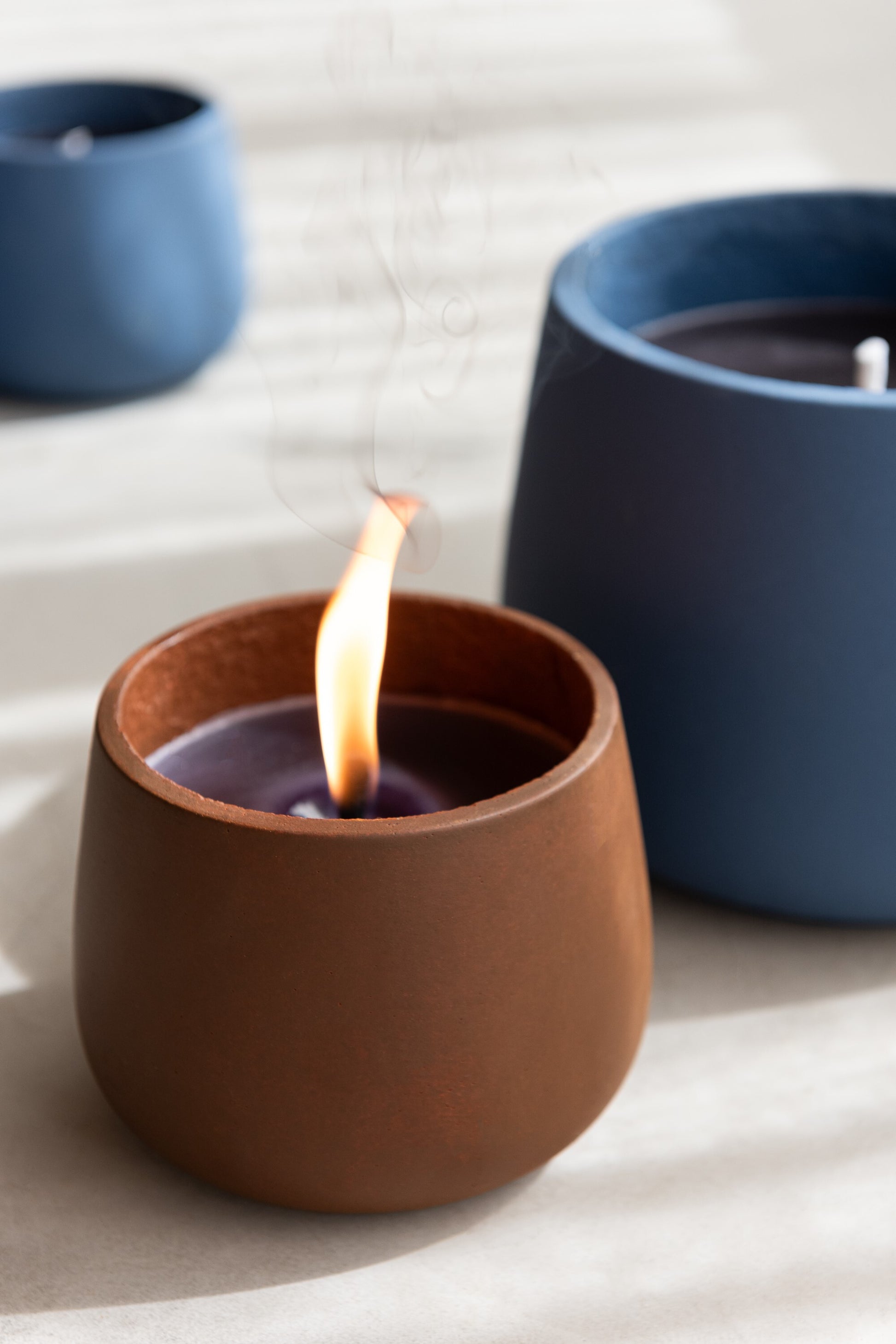 Bougie d'extérieur en ciment marron. Combustion : 31h. Elle apportera des points de lumières à vos soirées en extérieur.