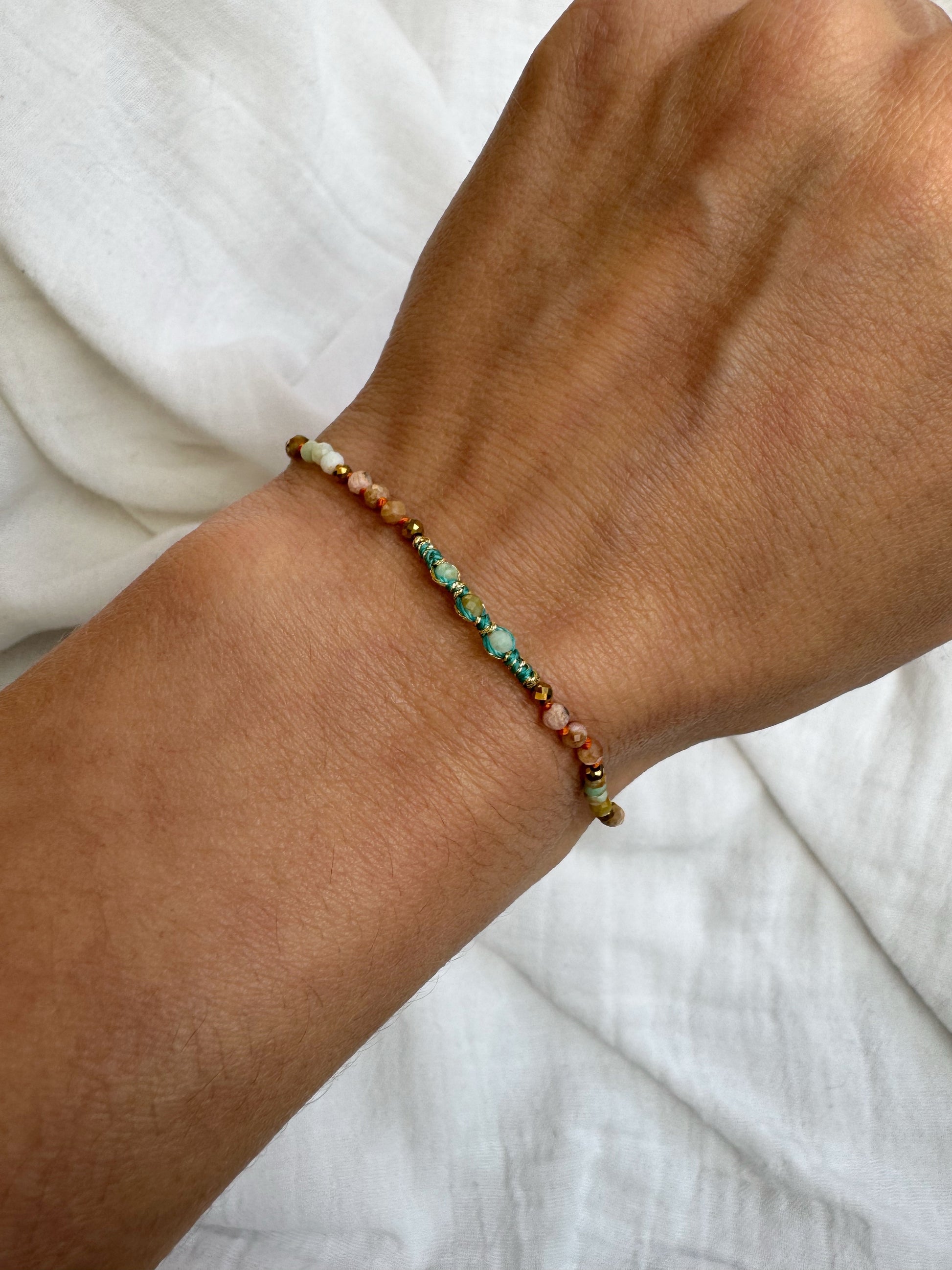 On craque complètement pour ce bracelet au multiples couleurs douces et pep's à la fois. Grigri à adopter de toute urgence pour un poignet d'été