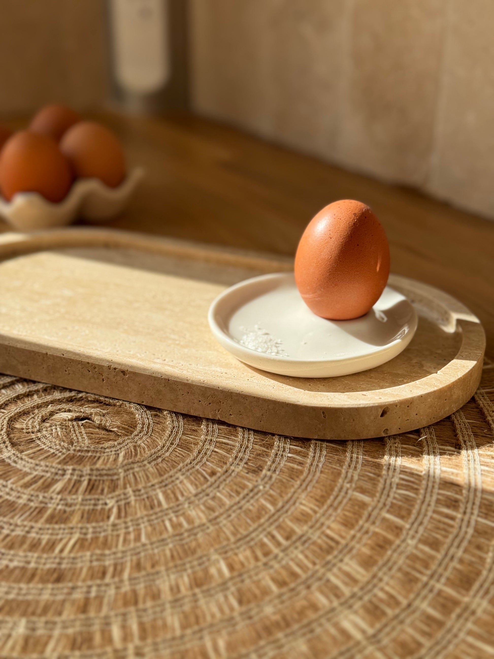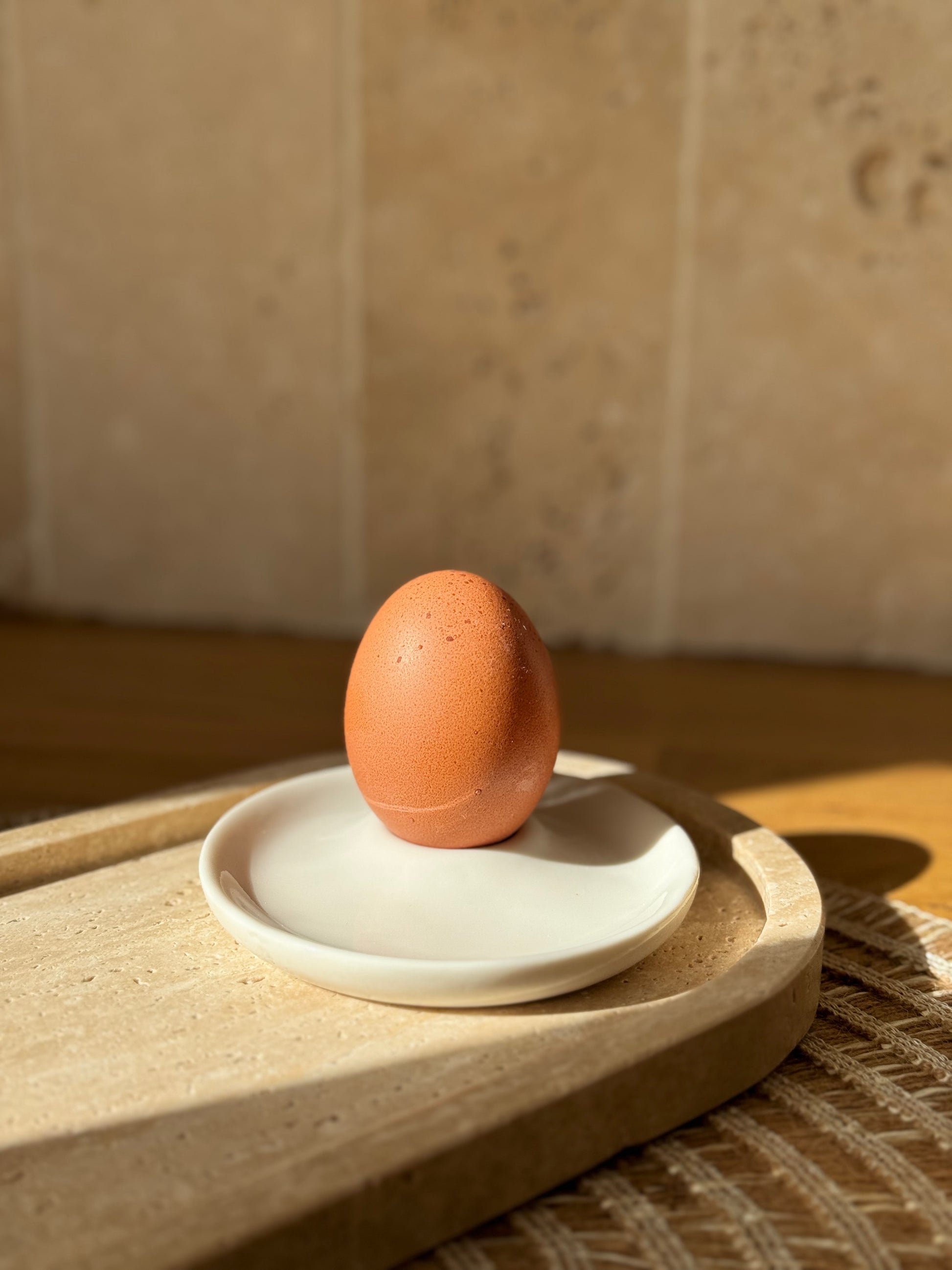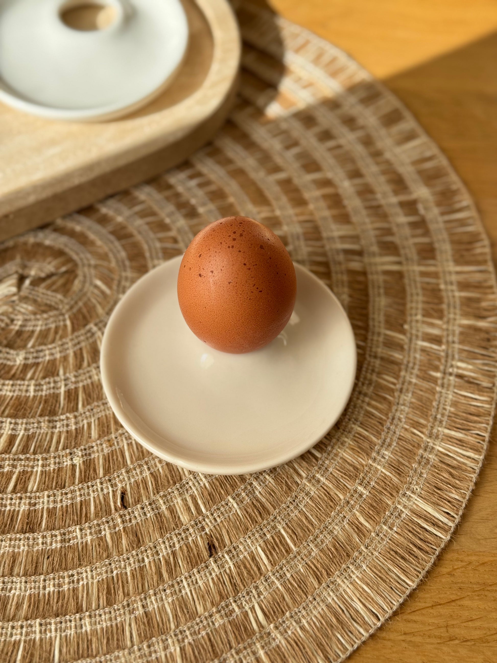 Coquetier en porcelaine blanc. Forme ergonomique.