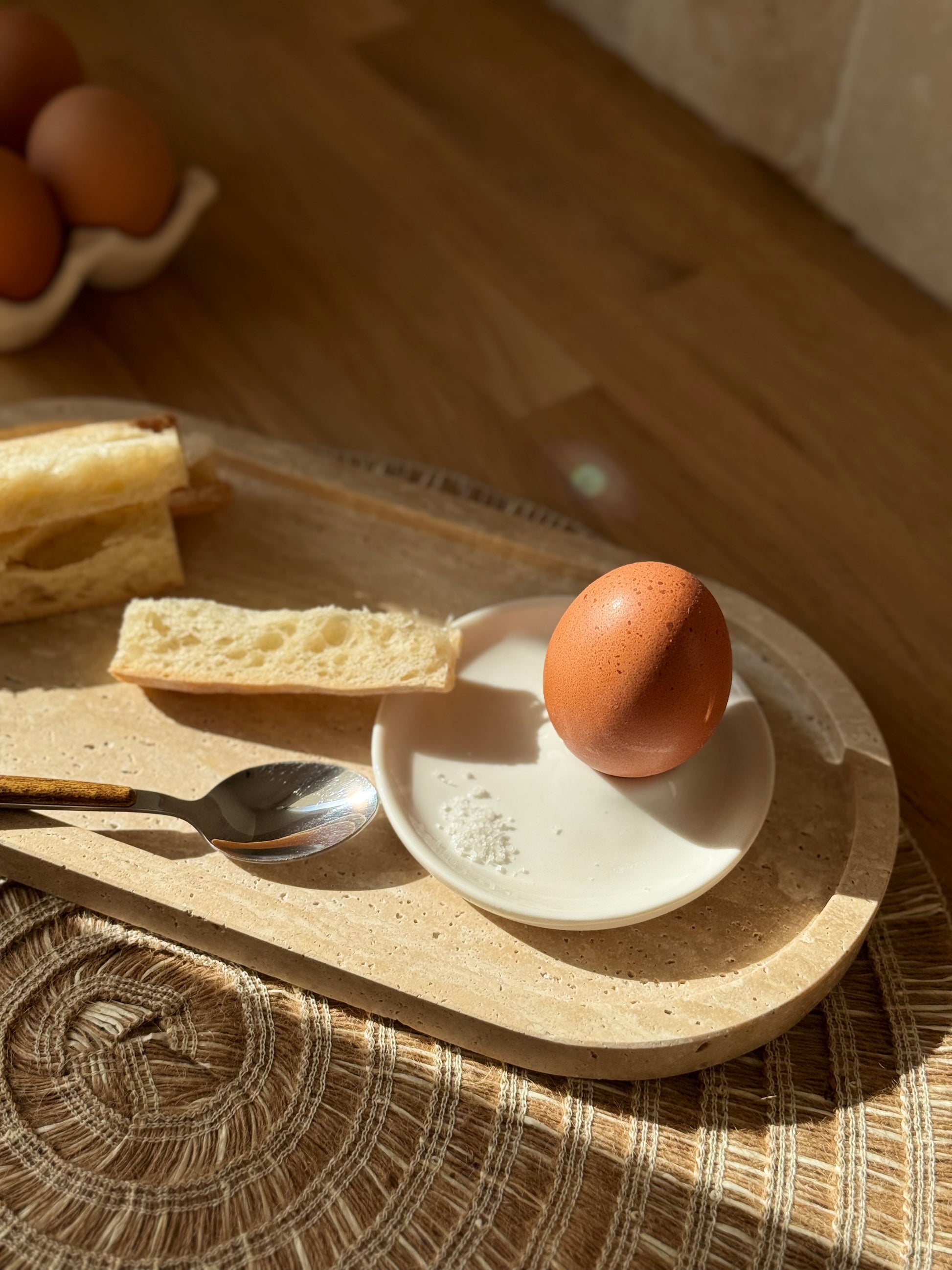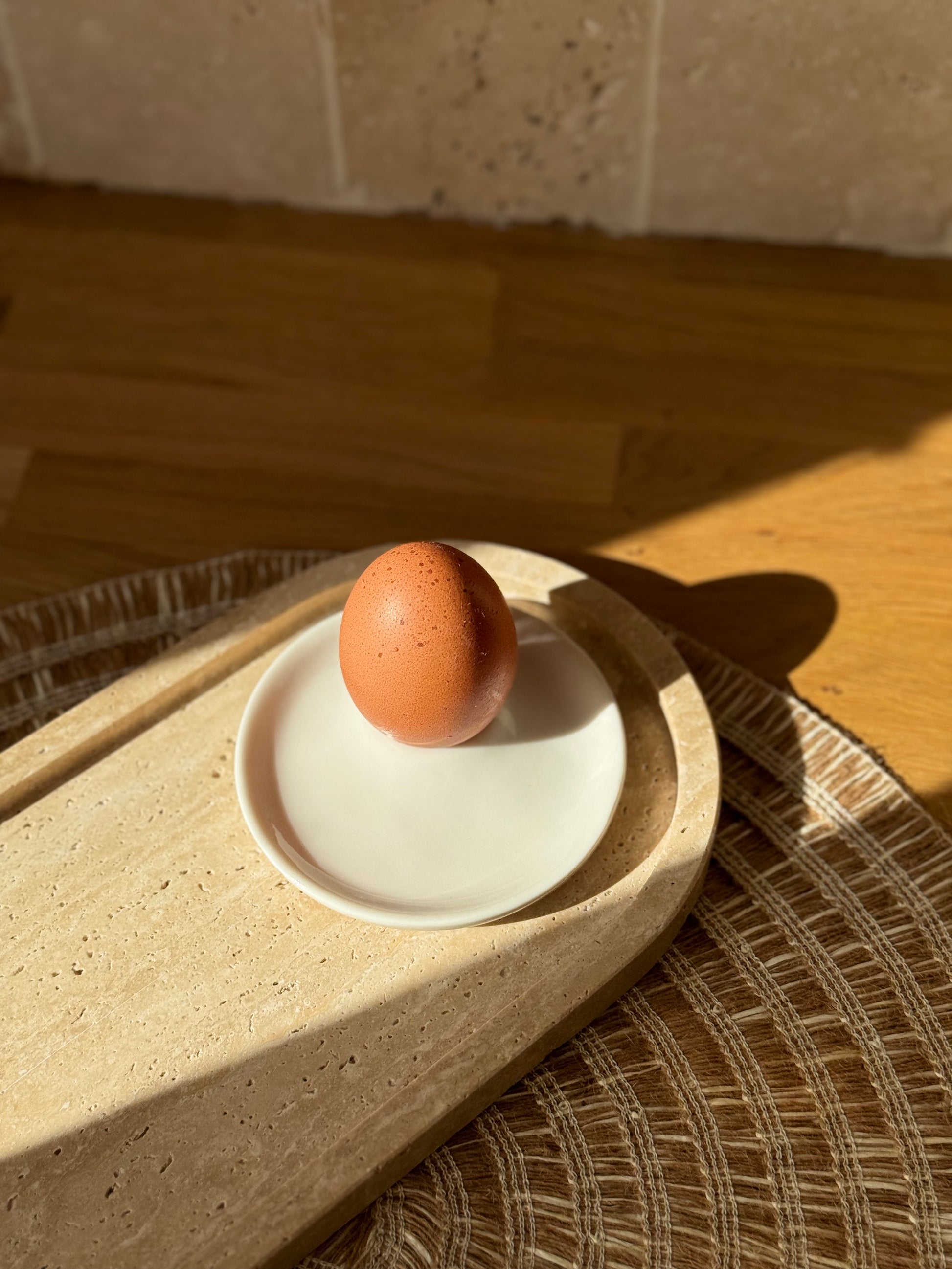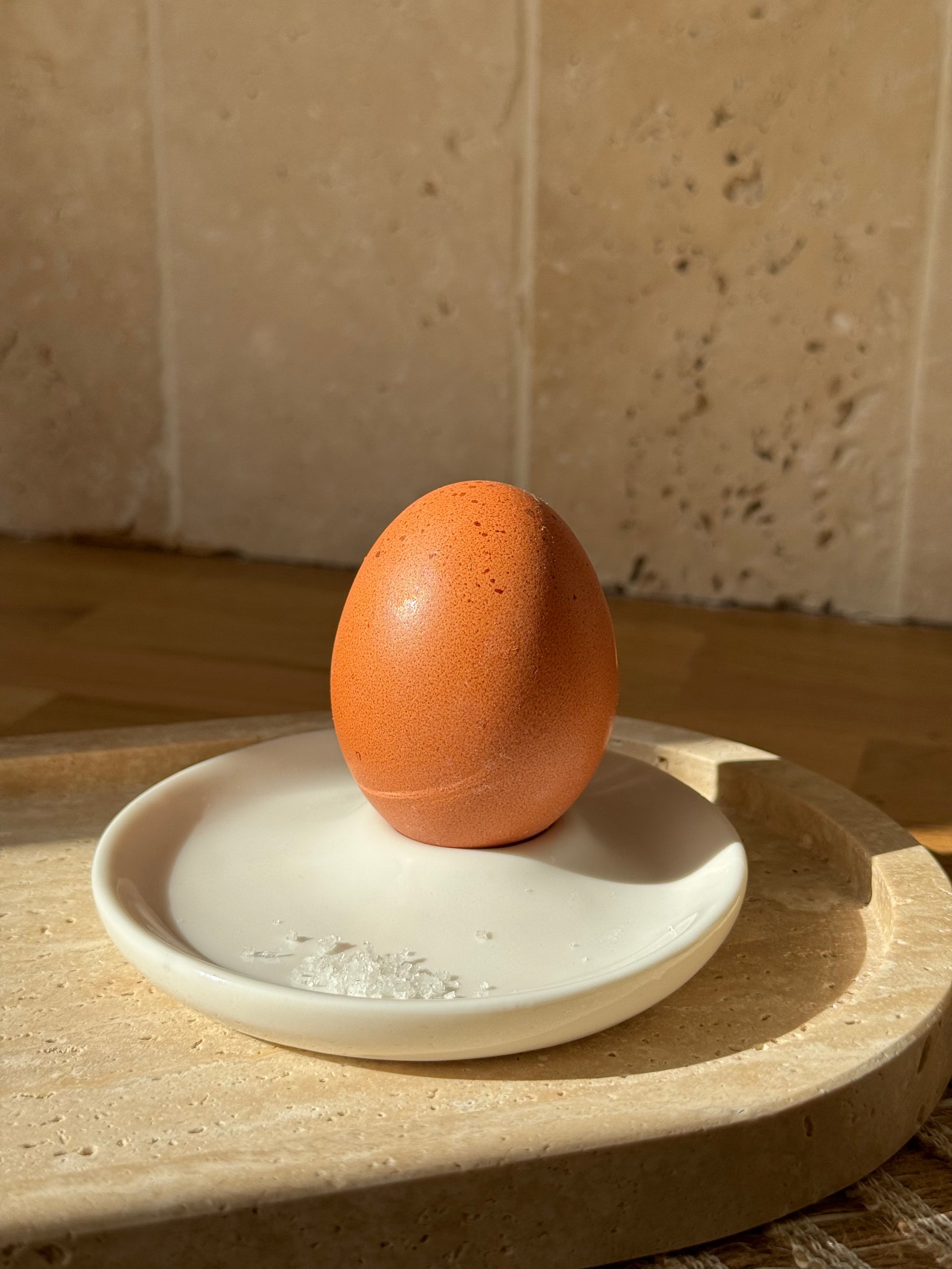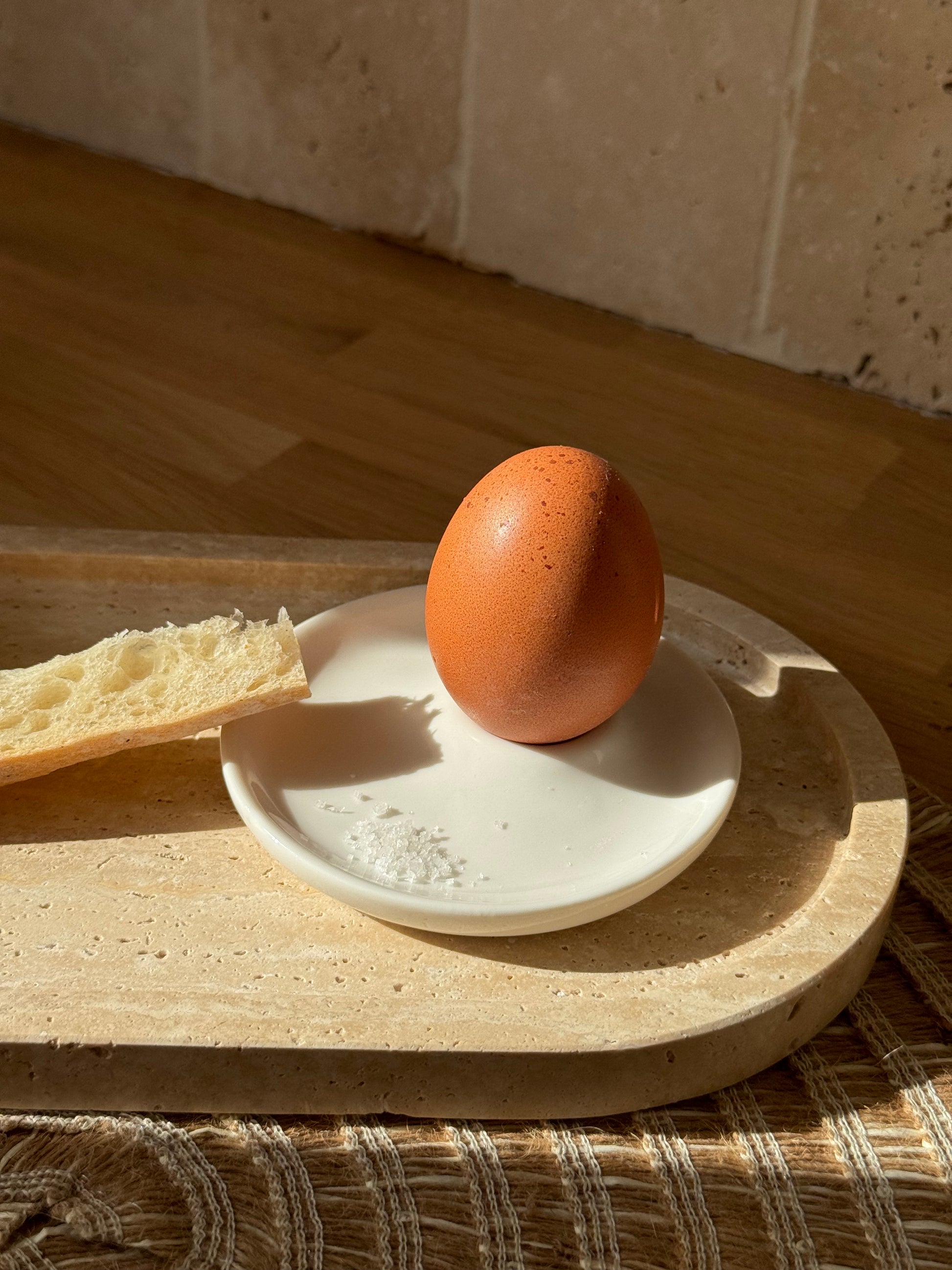 Coquetier en porcelaine blanc. Forme ergonomique.