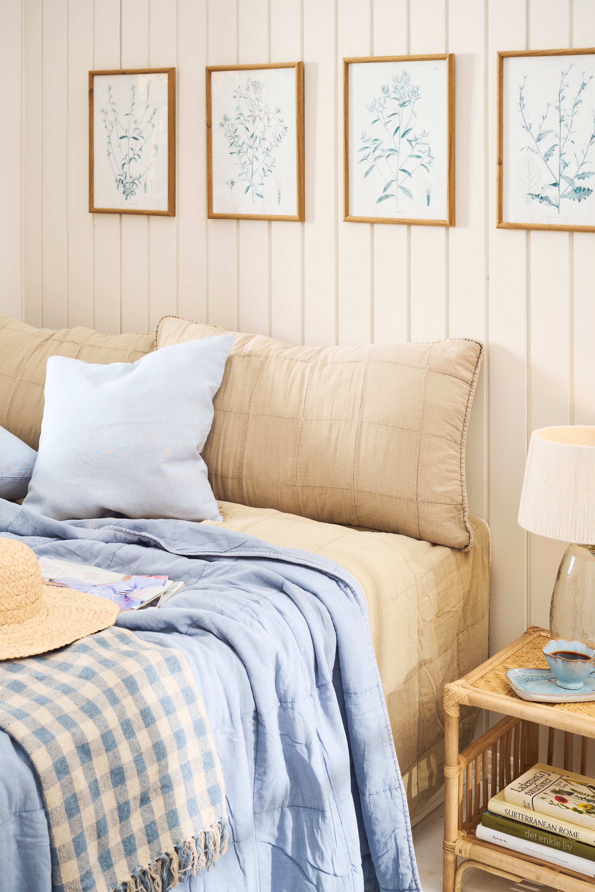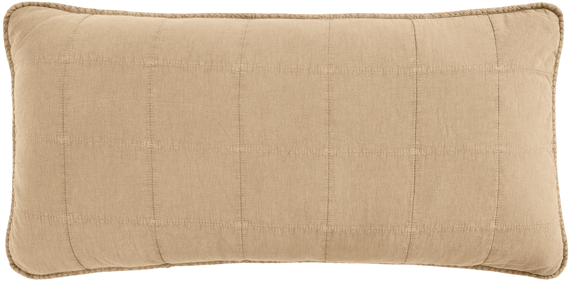 Coussin matelassé beige, déhoussable, ferme par lien à l'arrière. Idéal dans l'univers de la chambre pour une décoration pointilleuse, ou dans l'espace lecture pour créer une ambiance cocooning