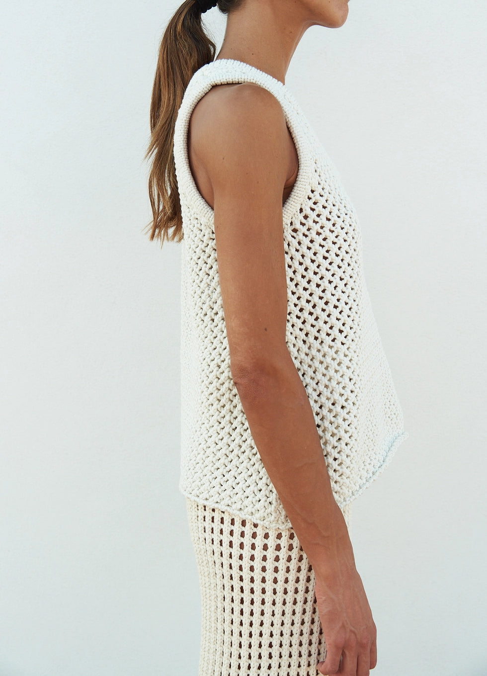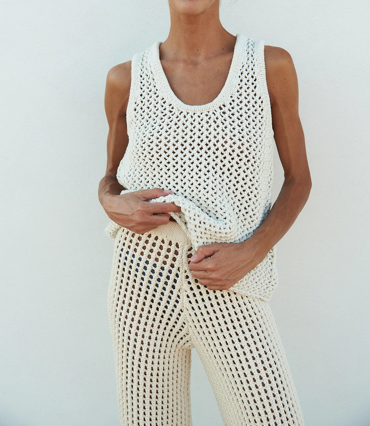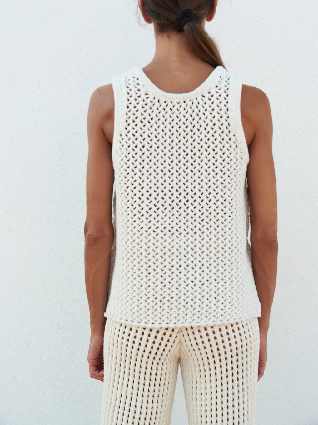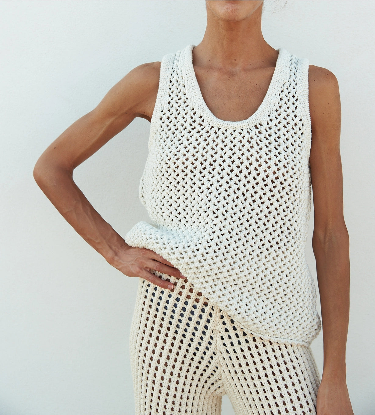 Débardeur en coton esprit crochet. Attention il taille petit: le S correspond a 34, le M 36 et L 38