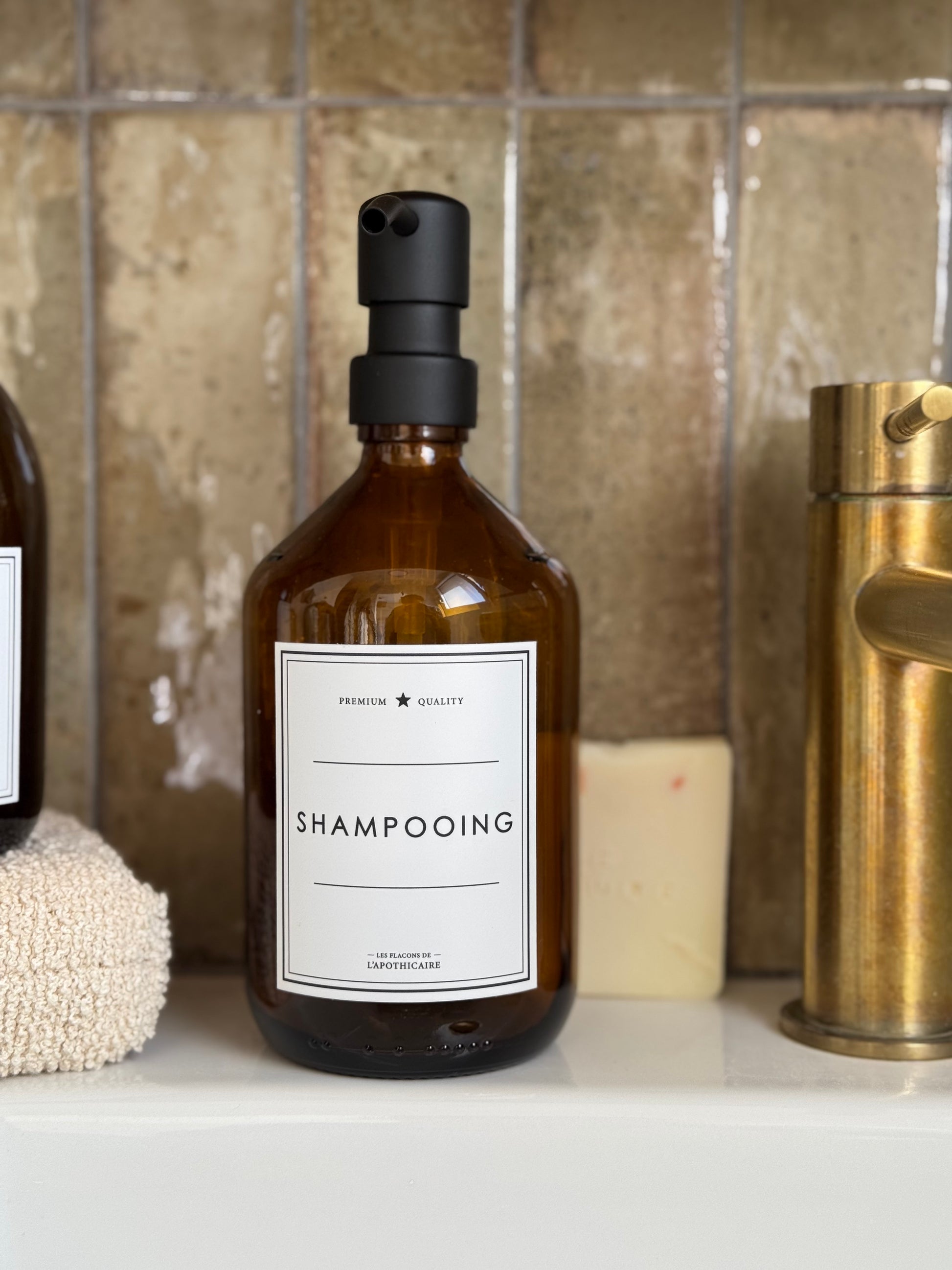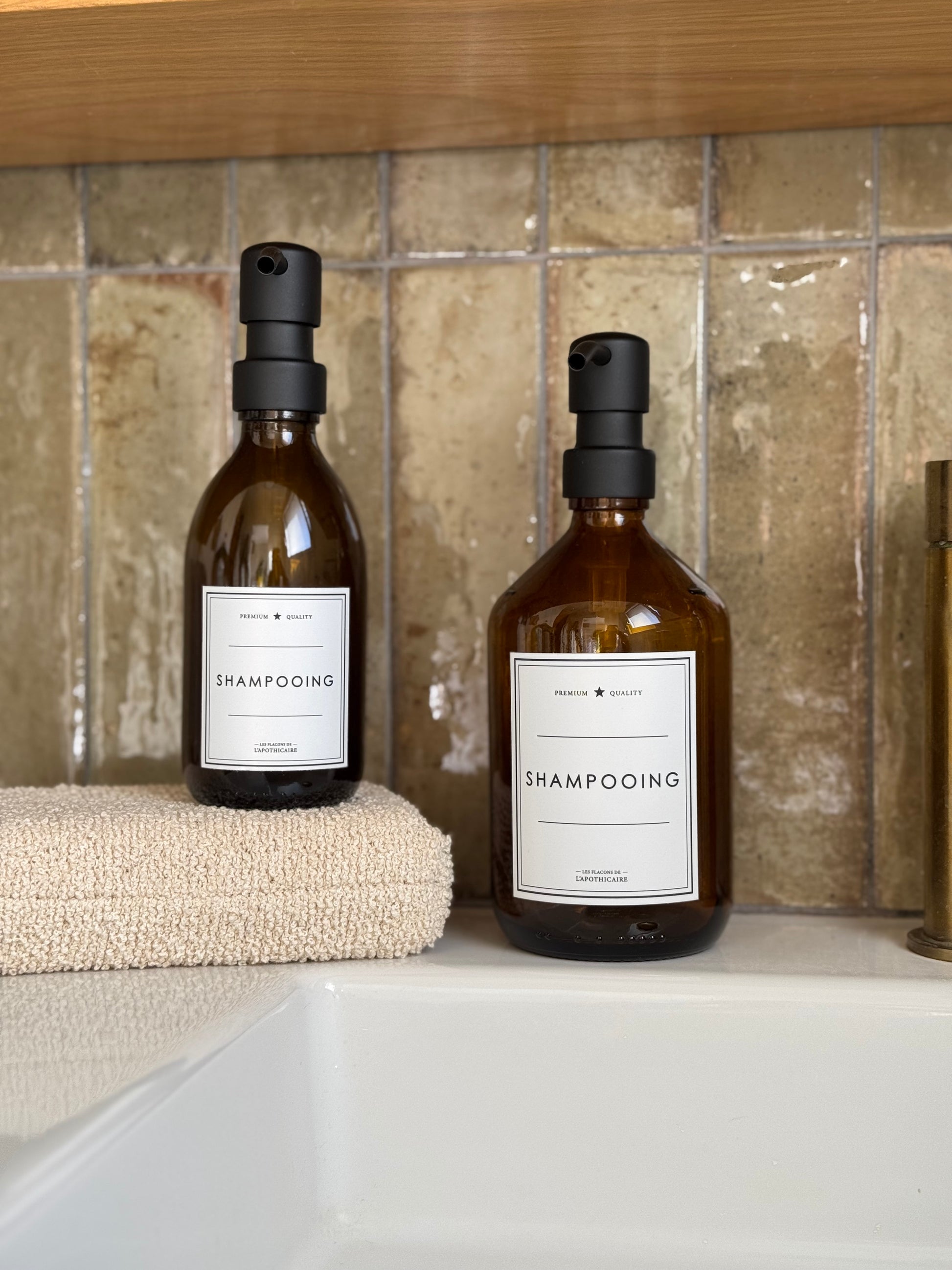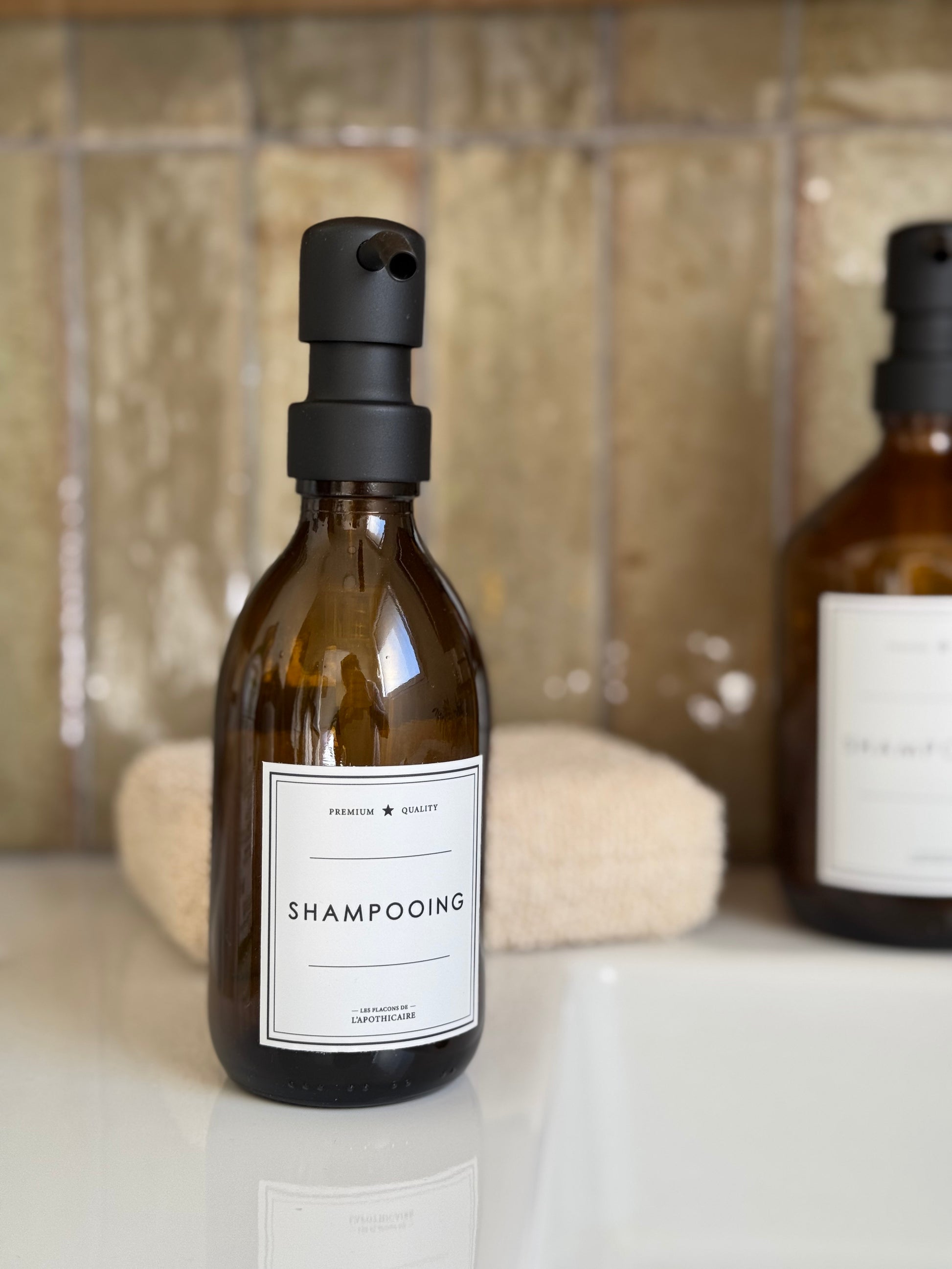 On craque pour ces flacons qui nous permettent de pousser la déco dans les moindres détails ;) Son flacon en verre ambré nous permet de garder une uniformité visuelle (car nous ne verrons pas la couleur du liquide versé dedans ;) et il préservera les liquides sensibles à la lumière ;)