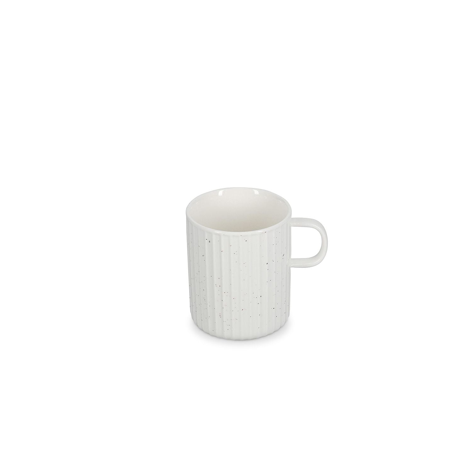 Mug en porcelaine blanc. Moucheté et nervuré, ce n'est pas un simple mug blanc ! Vous allez adorer le stocker sur vos étagères à vue dans la cuisine ;)