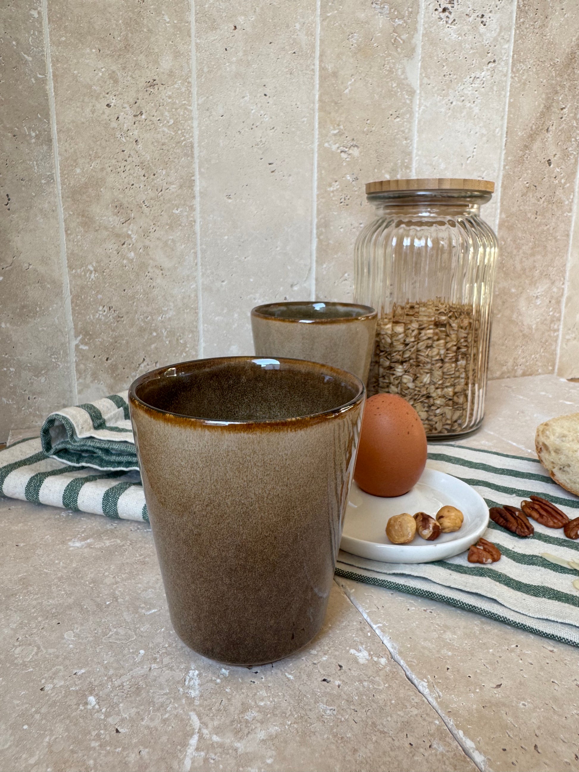 Mug en grès brun. On craque pour son coloris qui nous plonge dans nos souvenirs d'enfant