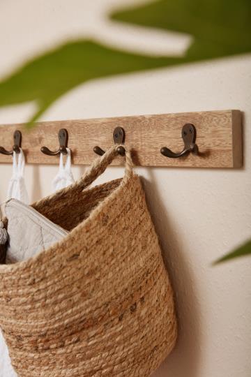 Patère 5 crochets, en teck recyclé. Le bois est récupéré dans des maisons ou sur des chantiers en Inde, il est ensuite retravaillé. Chaque pièce est unique, la photo n'est donc pas représentative de chaque pièce, des variations de couleurs peuvent être rencontrées .