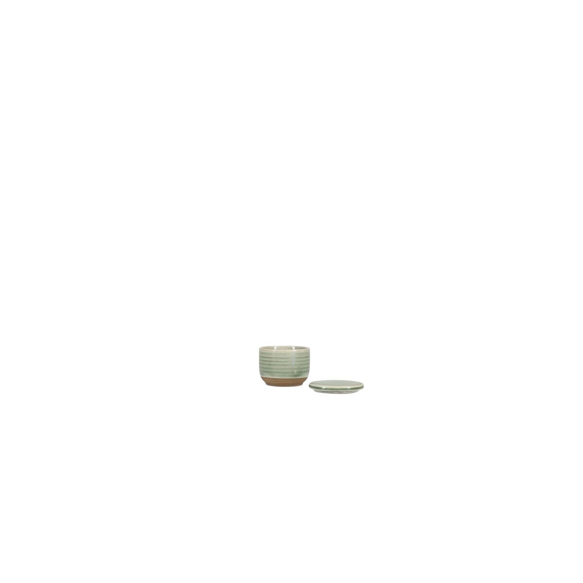 Petit sucrier à couvercle en grès à émail réactif vert.