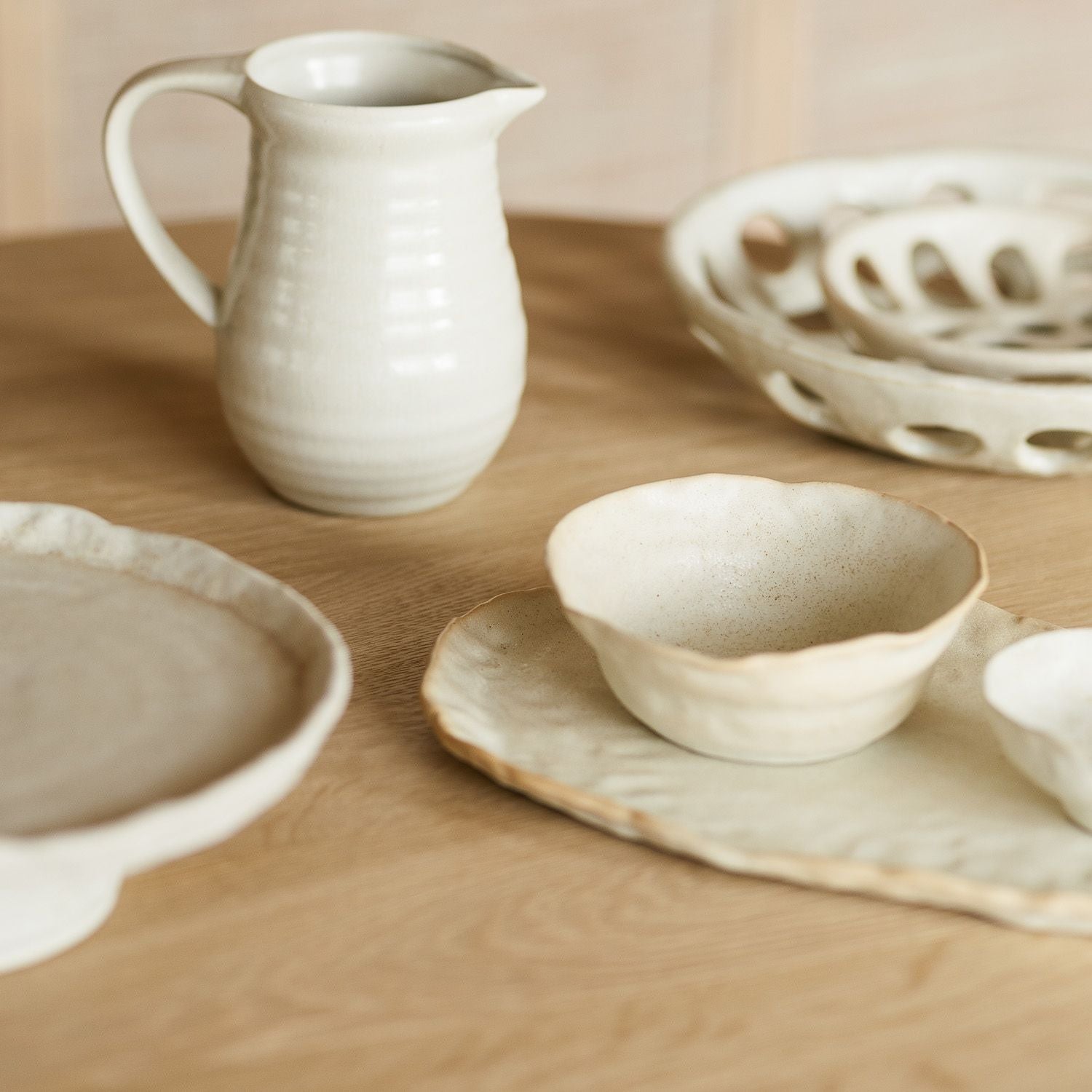Pichet / carafe beige. Contenance 1,4 L. Peut aussi être utilisé en vase