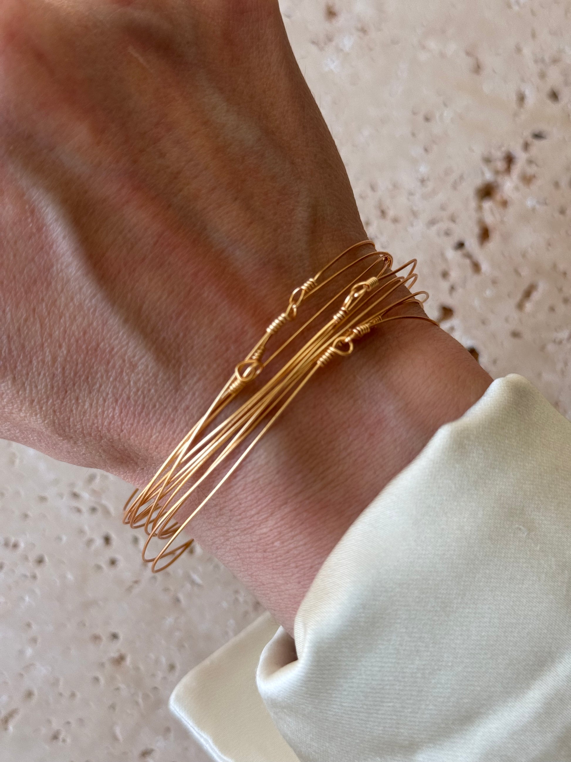 Lot de 10 bracelets fins fermés. Ils se déformeront au fil du temps, si vous souhaitez leur rendre leur formes d'origine, n'hésitez pas à les mettre autour du goulot d'une bouteille en verre