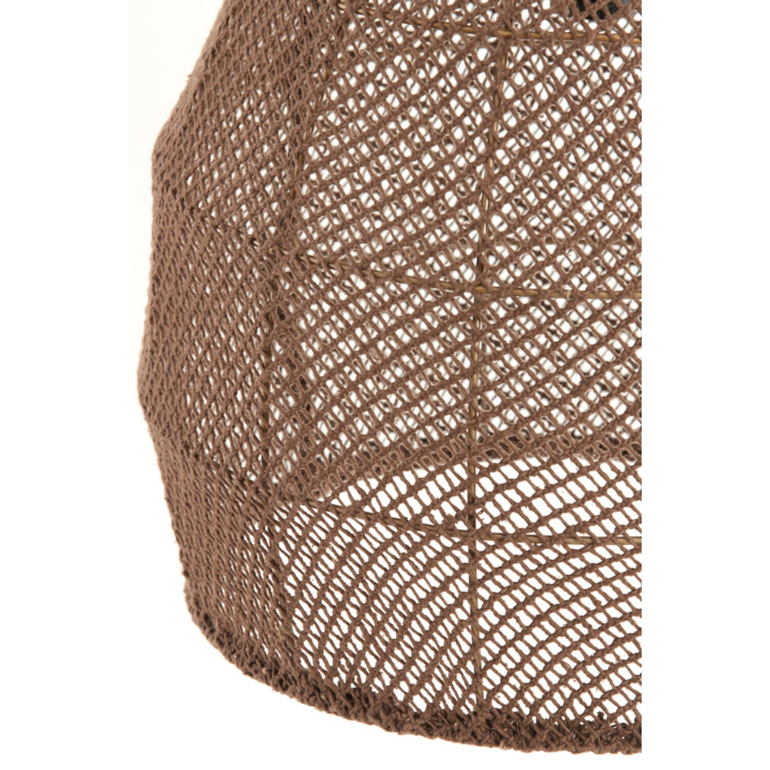 Suspension électrique marron, très beau travail de "tissage". Structure en métal sous le tissage pour que le luminaire garde sa forme. Il vous suffira d'y mettre une belle ampoule pour renforcer son look. Câble électrique en corde et socle noir.