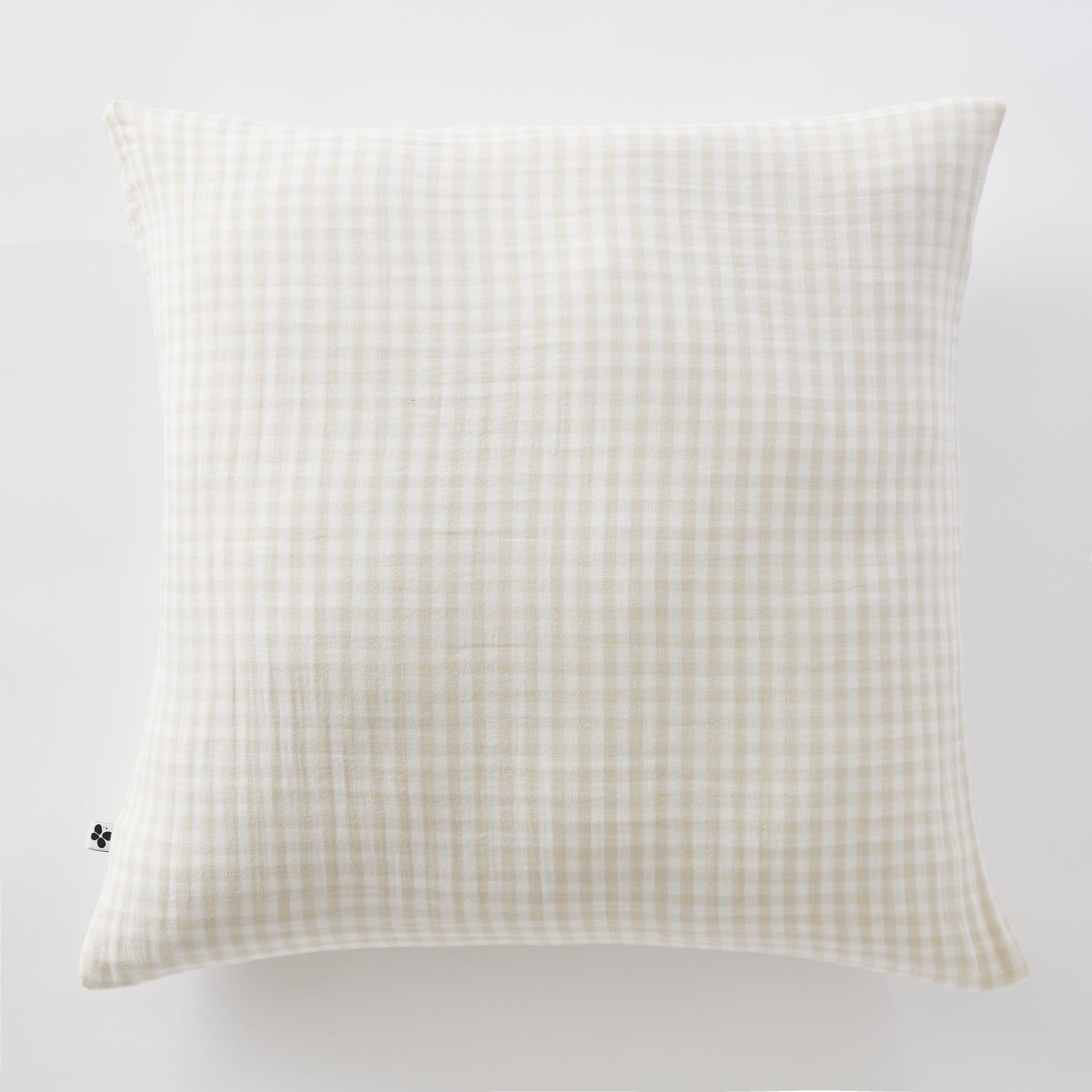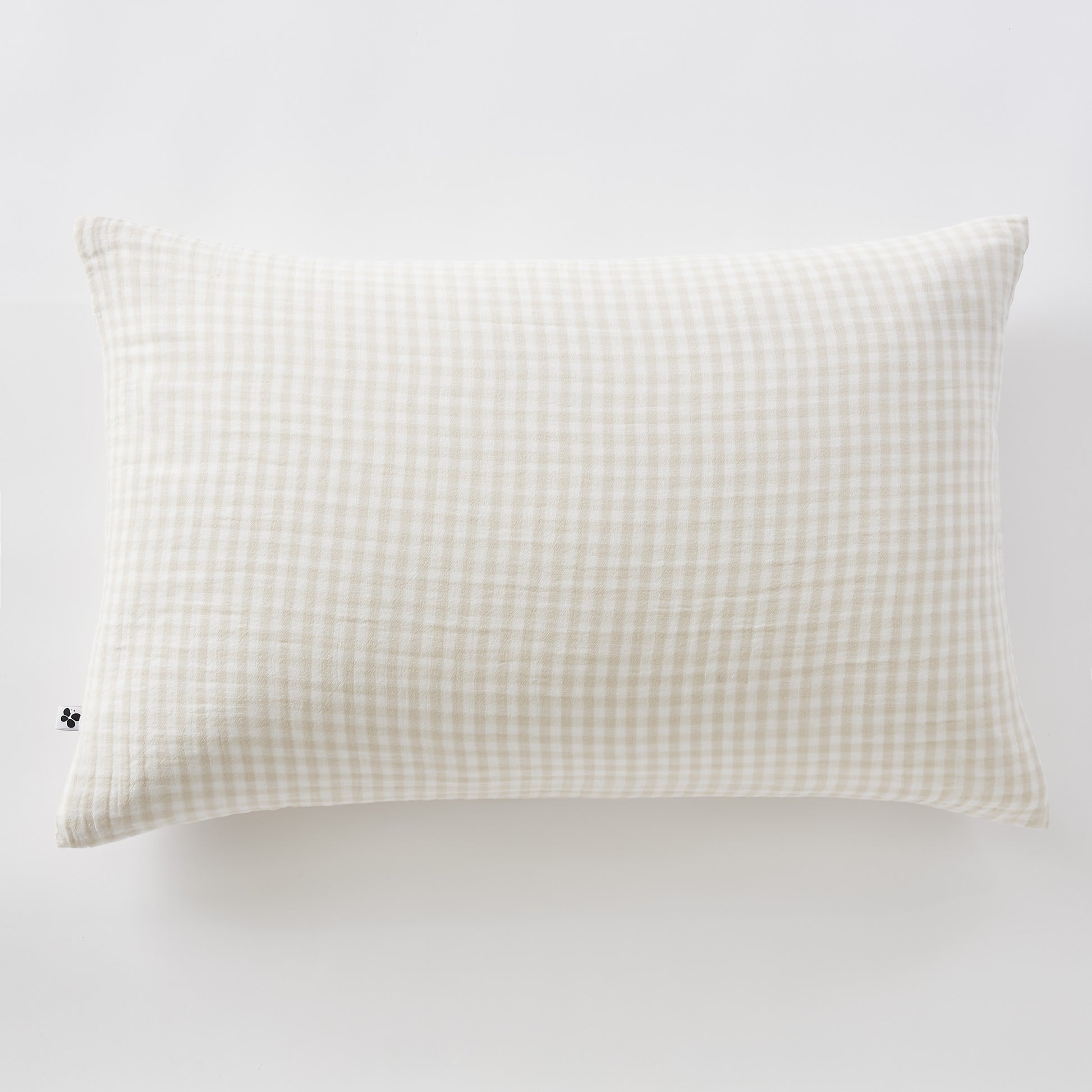 Taie d'oreiller en gaze de coton tissé, vichy pampa et blanc. Ouverture portefeuille avec rabas.