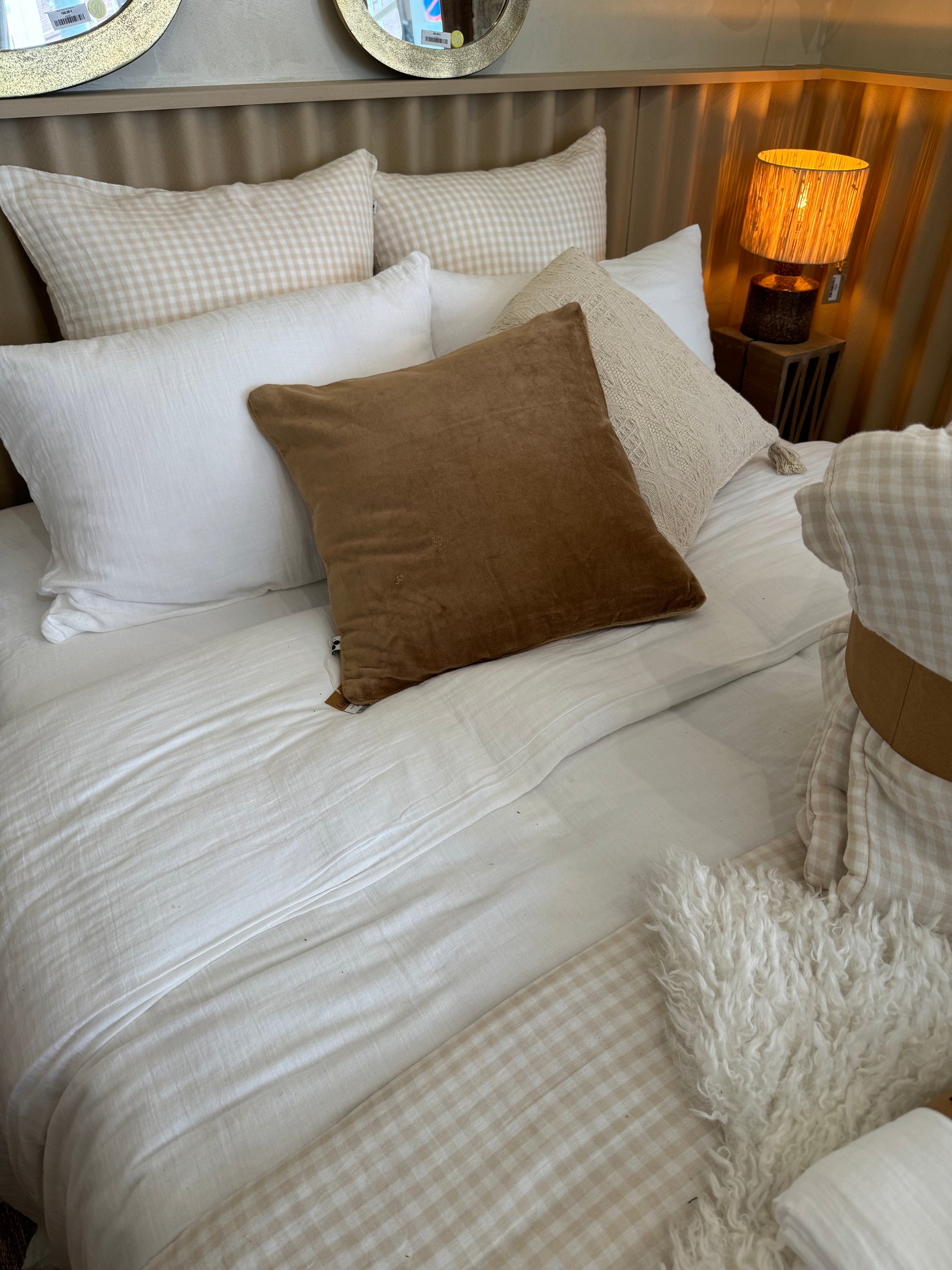 Le vichy un brin bohème & vintage, est idéal pour une ambiance chaleureuse, n'hésitez pas à mixer les taies d'oreiller entre elles pour un rendu unique