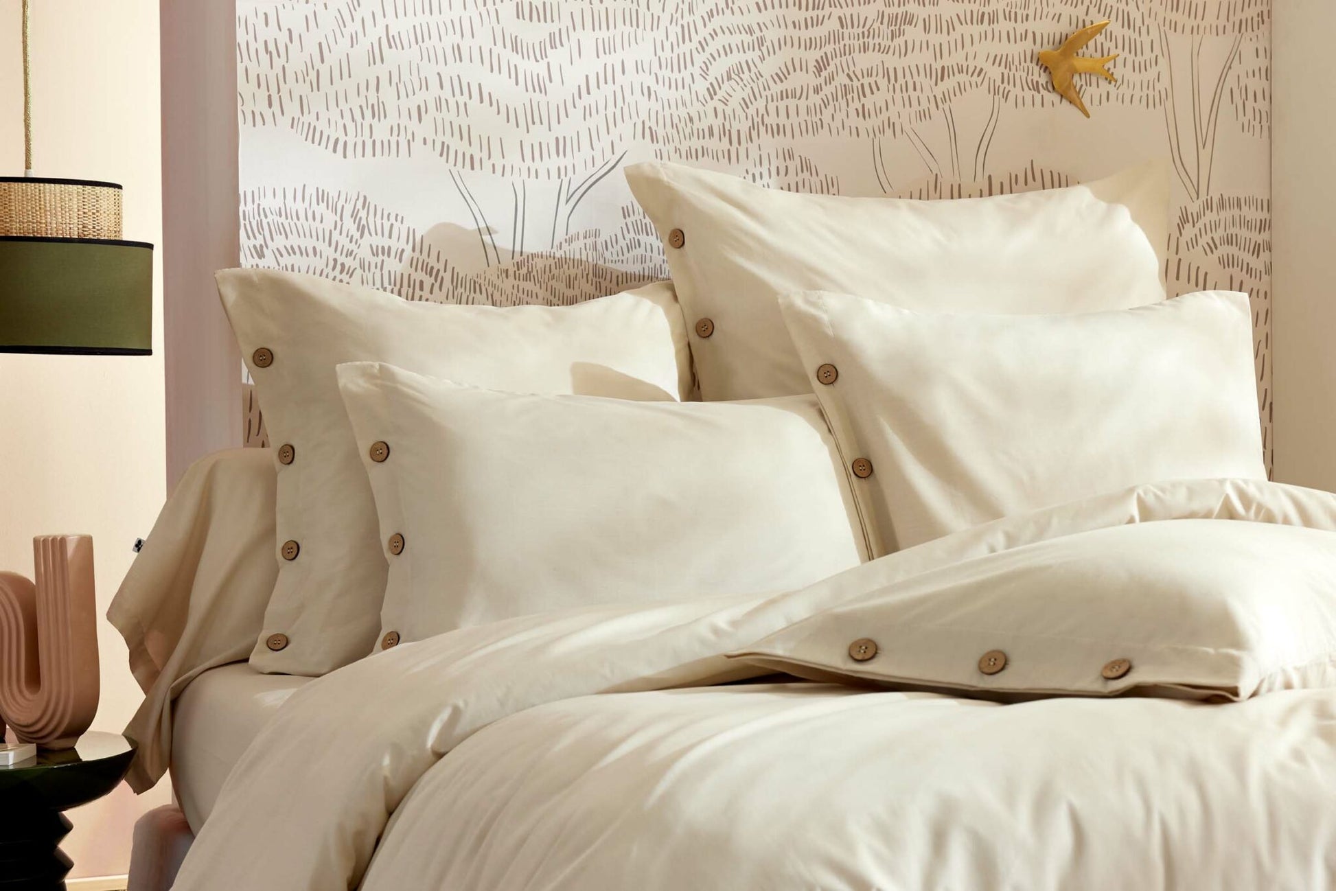 Taie d'oreiller unie coloris pampa, en percale de coton. Aspect mat et touché lisse, son tissage de 120 fils/cm² le rend très résistant. La taie d'oreiller ferme par boutons en coco.